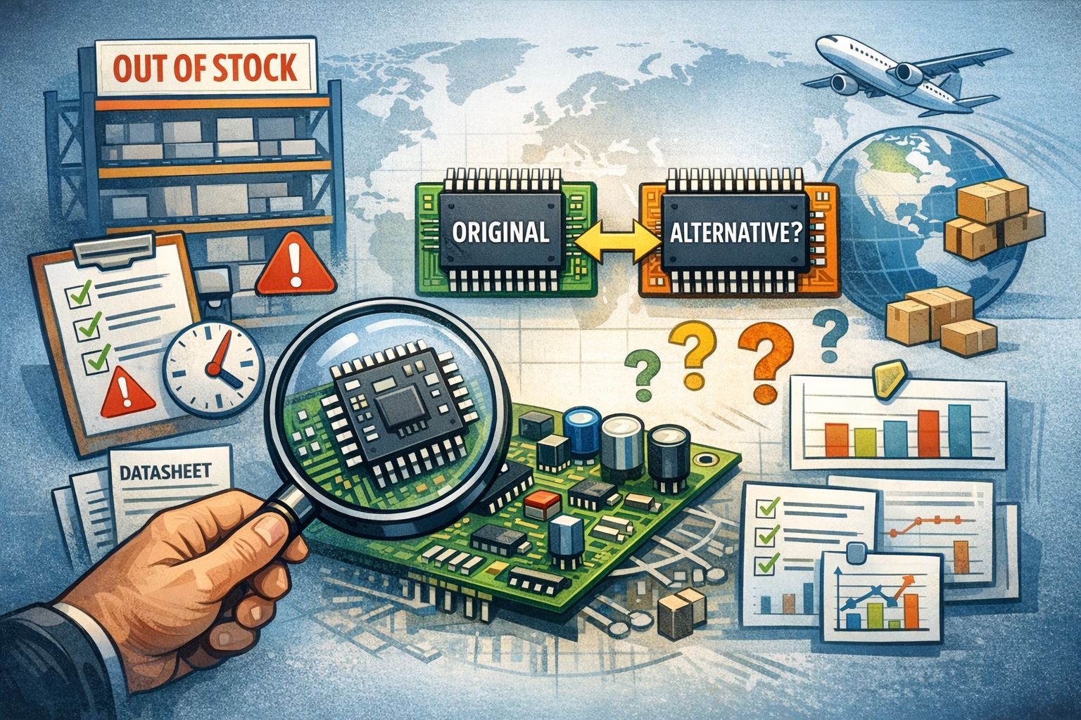 Настоящий second source — это не «похожий компонент», а возможность заменить позицию без переработки платы. Для этого заранее учитываются: